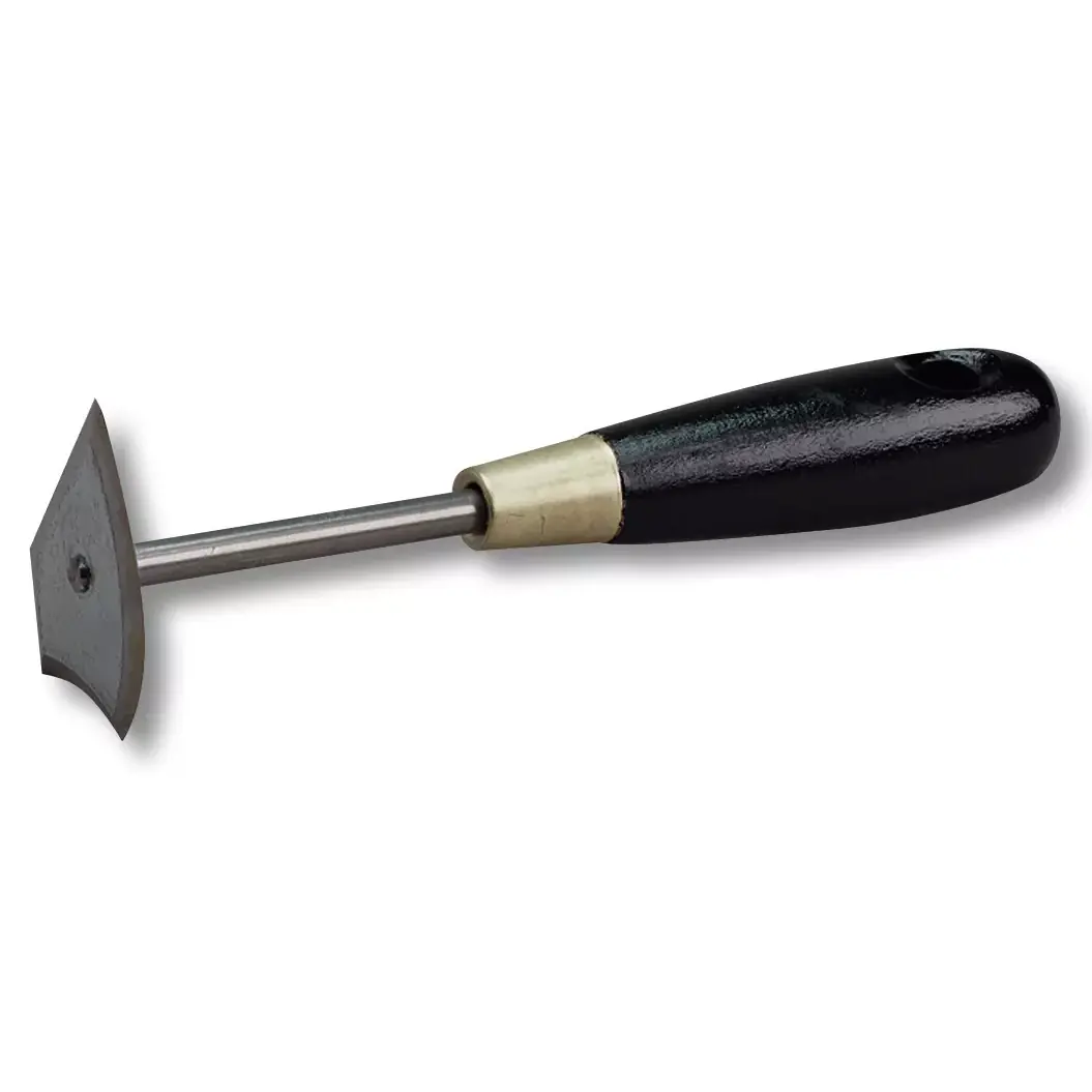 Tempered steel blade sharpened 4 different faces, varnished wood handle.