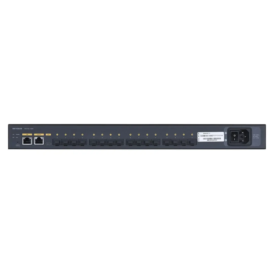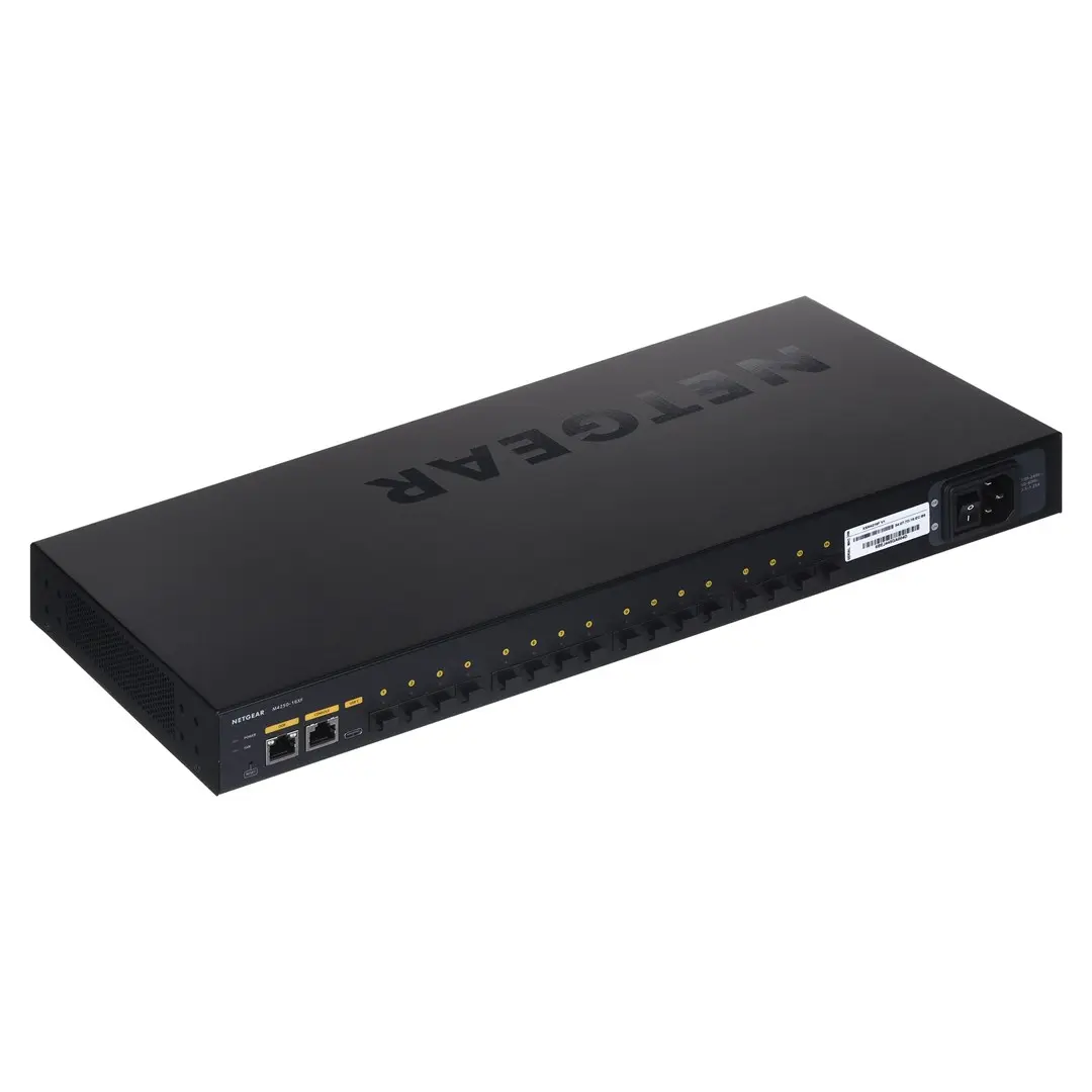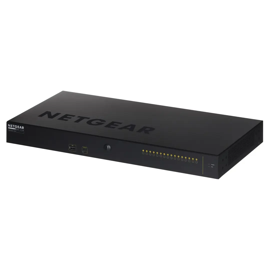 The Netgear M4250-16XF switch supports 1G AV over IP with PoE+, ensuring seamless integration in AV setups.