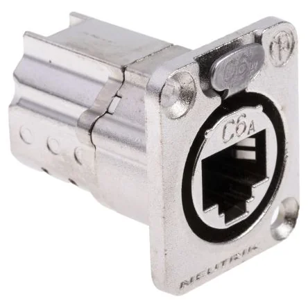 Neutrik Feedthrough ReceptacleThe Neutrik etherCON series CAT6a feedthrough receptacle features high noise immunity and EMI protection. This panel mount receptacle has a standard D-shape with a rugged latch lock system and is also intermateable with the etherCON CAT5 range.Features and BenefitsRated current per contact is 1.5A Contacts material is spring steel with gold plating Nickle plated Sturdy and reliable PoE+ compliant according to 802.3at Type2ApplicationsAudio Commercial entertainment Live stage production DMX lighting Industrial and outdoor internet access environmentsCertificationsIP65 rated ISO / IEC 11801 EN50173-1