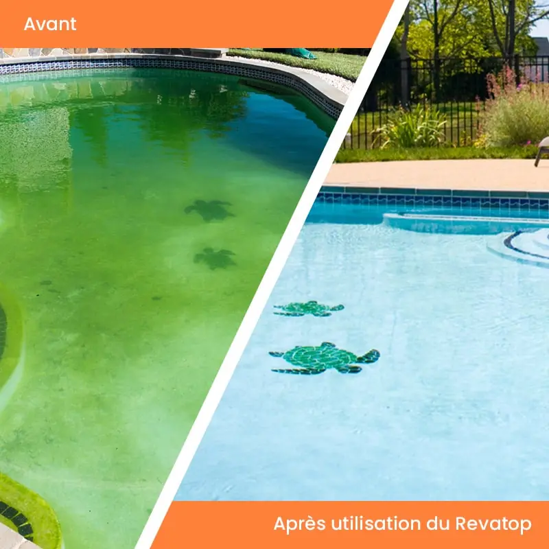 The MAREVA REVATOP 12 % - 5 L is a ready-to-use shock clarifier made of active oxygen that will allow you to disinfect and restore the beauty of your pool in just a few hours after application, in an ultra-fast, effective, and powerful way by removing green algae. Revatop is particularly effective for common shock treatments or clarifying green pool water in just a few hours, restoring its bluish colour; this algaecide is both curative and preventive with an immediate effect that is visible within minutes. Its action is instantaneous, the water becomes beautiful very quickly, unlike a chlorine shock treatment where you have to wait 24 hours; you can already swim again a few hours later. The advantage of Revatop is that it changes from the chlorine molecule, a molecule to which bacteria become accustomed. Based on active oxygen, it only provides oxygen and pure water and proves to be very effective. Moreover, it avoids any addition of stabiliser (a chemical component to limit in your pool) and is compatible with all treatments. Shock treatments should be carried out every 3 to 4 weeks depending on the usage of your pool and various parameters; it’s an opportunity to do one while avoiding the inconveniences of chlorine. Thus, you can fully enjoy the joys of your pool during the summer!