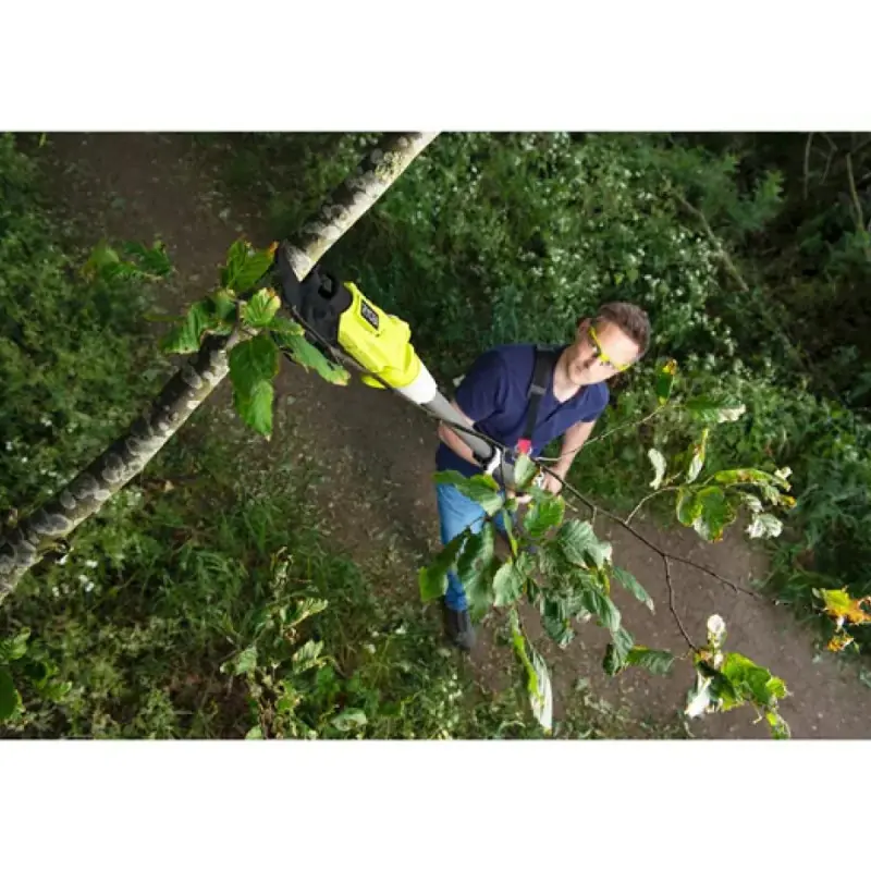 A RYOBI 18V One+ telescopic pruner - Without battery or charger - RY18PLA-0 Delivered with shoulder harness Delivered in its original packaging.