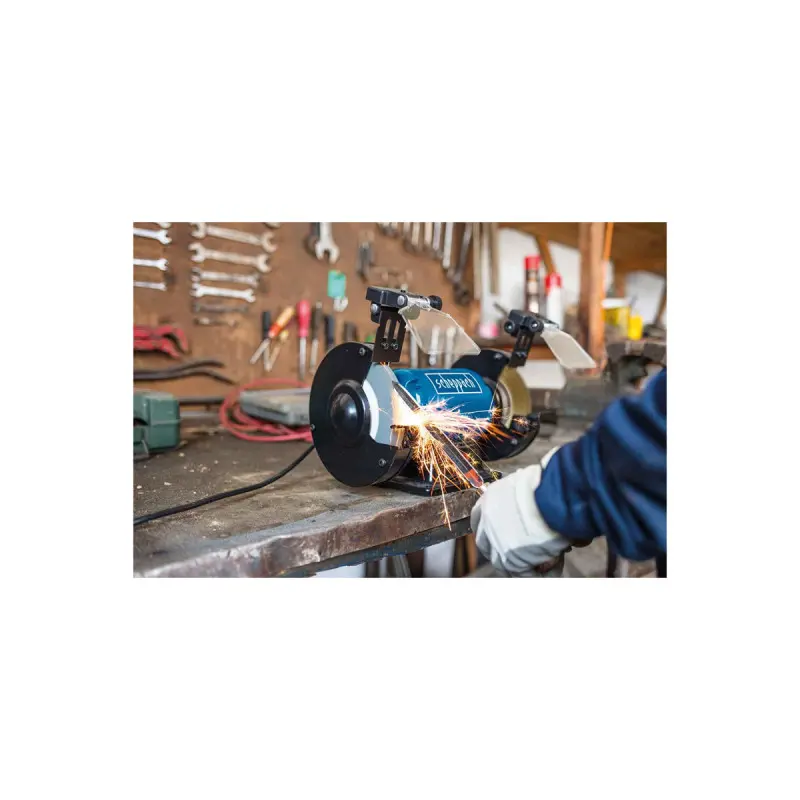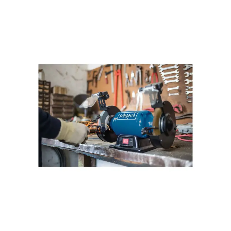 The SCHEPPACH SM150LB bench grinder is the essential tool for carrying out various tasks in your workshop. Equipped with a powerful 400 W (0.5 HP) motor and great versatility, this device will allow you to clean parts as well as prepare surfaces for welding and brazing.