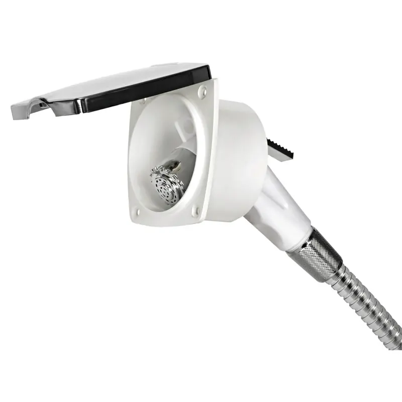 Durable chromed shower box with a 2.5m stainless steel hose for marine use.