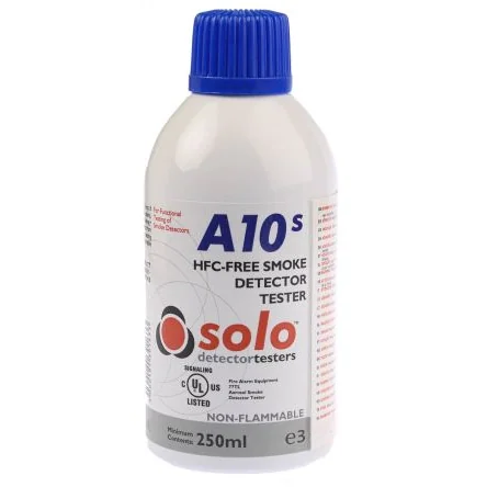 The SoloA10S is a non-flammable aerosol for testing smoke detectors, ensuring safety and compliance.