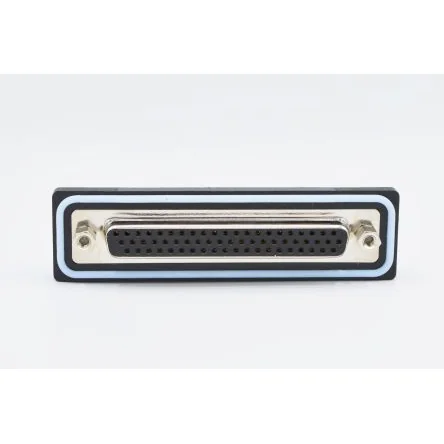 High density 62-way right angle D-sub connector socket with durable construction and IP67 rating.