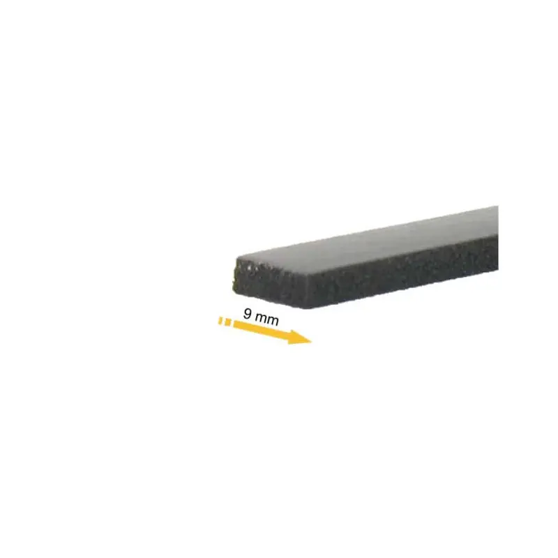 The Norton black single-sided foam tape 3mm x 9mm x 30m is a foam tape that will soundproof your rooms, dampen vibrations, and protect you against moisture, dust, and light. It is widely used for sealing work. Closed-cell polyethylene foam with single-sided adhesive. Designed for irregular surfaces, it does not crack, crumble, or turn to powder.