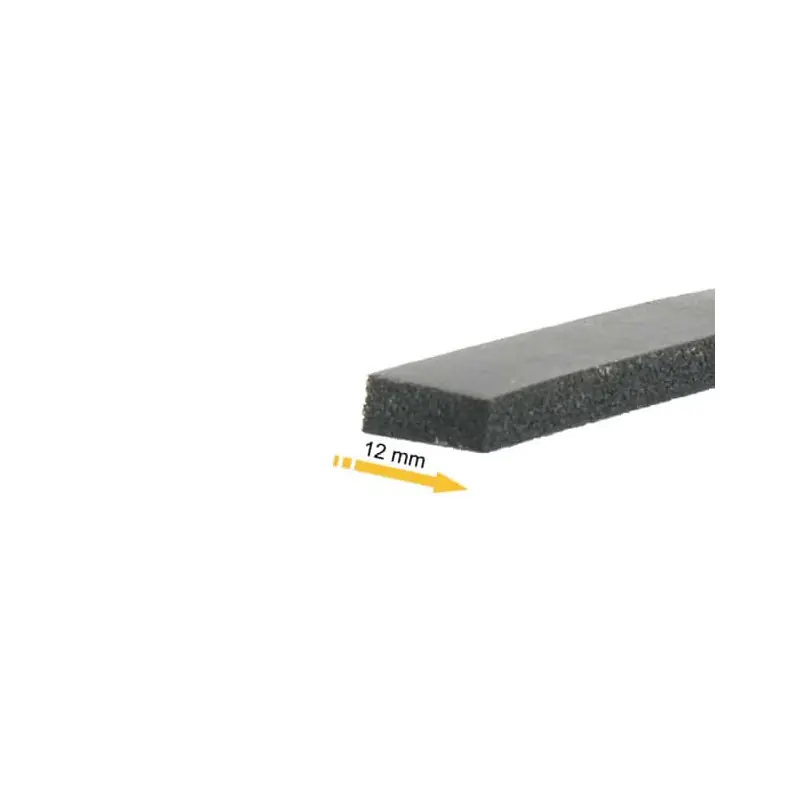 The Norton black single-sided foam tape 4.5mm x 12mm x 20m will soundproof your rooms, dampening vibrations and protecting you against moisture, dust, and light. It is widely used for sealing work. Closed-cell polyethylene foam with single-sided adhesive. Designed for irregular surfaces, it does not crack, crumble, or turn to powder.