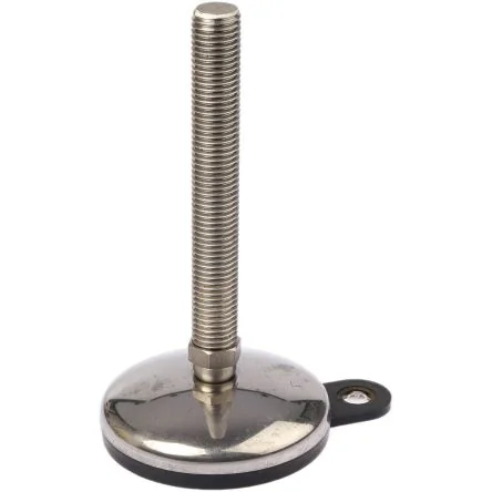 S/Steel Bolt-down Levelling Feet. Allows foot to be bolted down into position Base Pressed Stainless Steel 303 with inset Nitrile Rubber core with stainless steel tag Stainless steel type 303 Stud