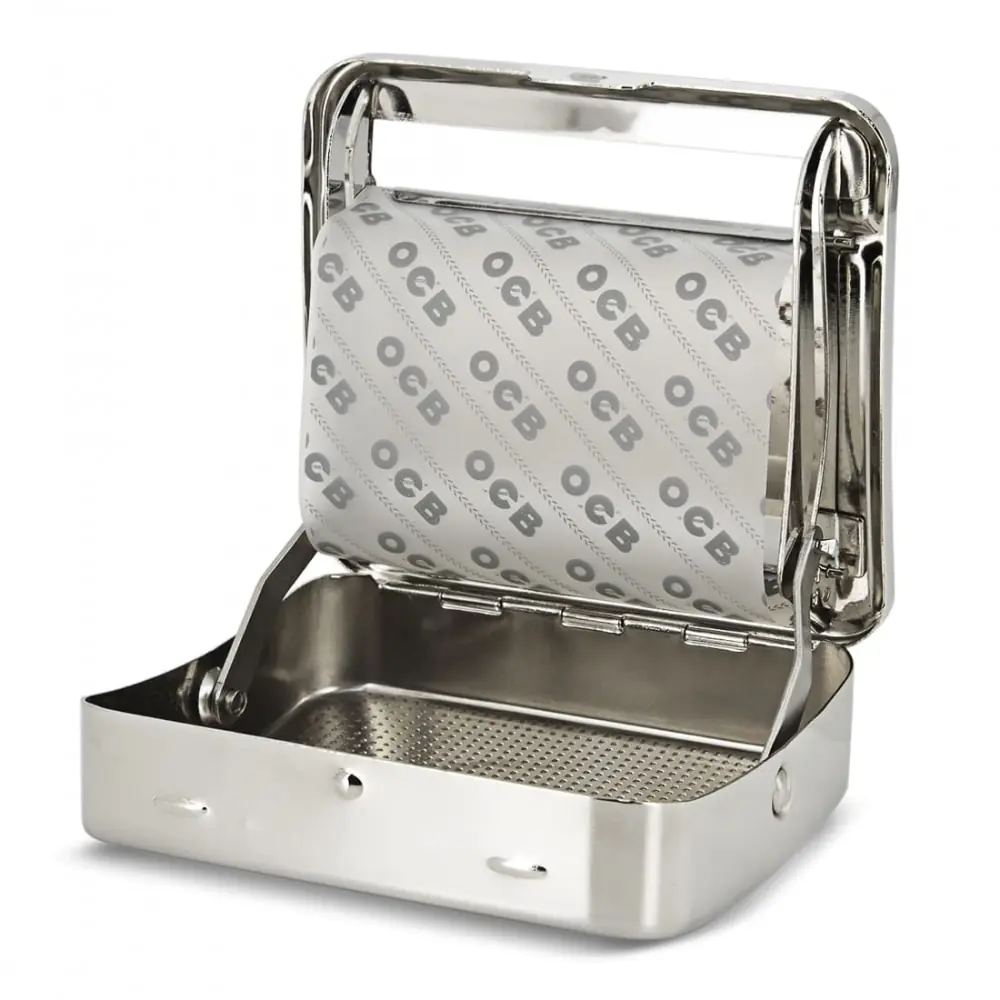 metal rolling machine compatible with a regular size rolling paper. with a joke part to store tobacco.