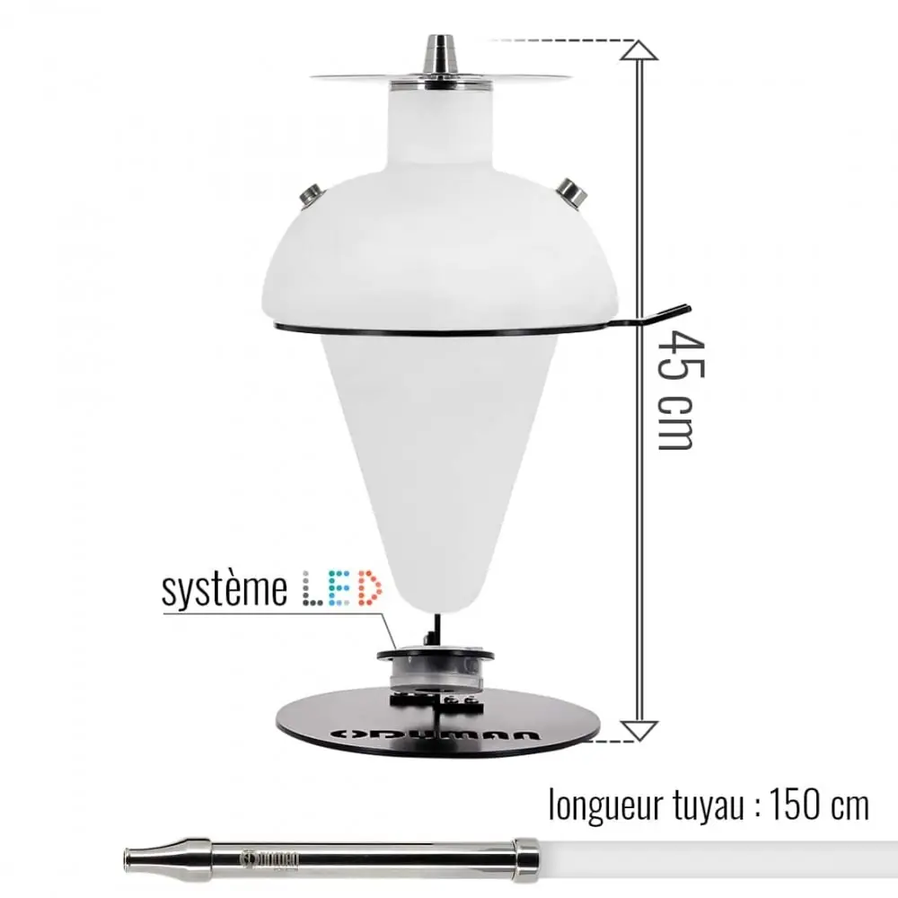 the 45 cm oduman n5-z opaque hookah combines design and innovation with its integrated led system and its futuristic silhouette in opaque glass. made with high-end materials it offers unmatched stability and performance.
