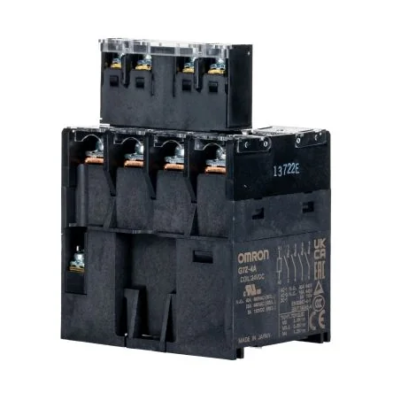 G7Z series provides a compact, cost efficient solution for applications such as inverters, UPS, solar and fuel-cell battery circuits. Coil ratings are available in 12 and 24 VDC. Power consumption is less than 4 watts.Switching current 160 A (40 A rating / 4-pole / IEC-AC1) Switching voltage 440 VAC Safety function with mirror contacts in various configurations Power consumption less than 4 Watts Low Switching Noise (70 dB)