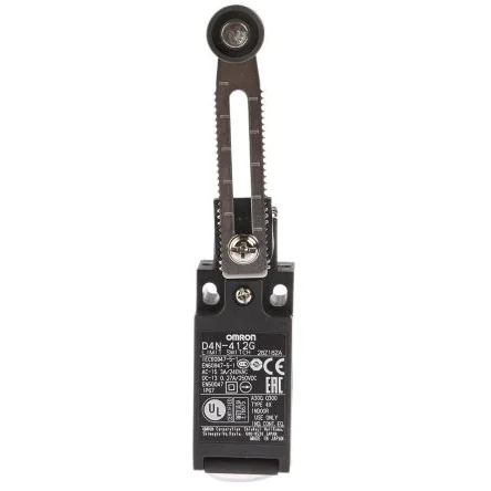 Omron Limit SwitchThe Omron D4N series snap action limit switch has 1NC/1NO contact configuration and an adjustable roller lever actuator. It has a screw connection and 1-conduit M20 connection. The standardized gold-clad contacts provide high contact reliability.Features and BenefitsContact rating is 10A continuous Free of lead, cadmium and hexavalent chrome, reducing the burden on the environment Built-in switch mechanism Minimum mechanical life of 15000000 cycles Head may be located in choice of 4 positions It has a form lock Operating temperature ranges between -30°C and 70°CCertificationsIP67 rated TUV EN60947-5-1 UL508 CSA C22.2 No.14 CCC certified GB14048.5 EN50047 EN1088