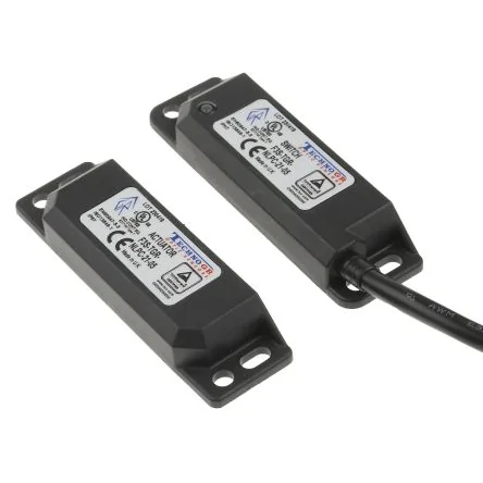 Omron Non-Contact SwitchThe Omron F3S-TGR-N_C series non-contact switch has a switching distance of 17mm and 24VDC supply voltage. This is an elongated sensor type with 5m pre-wired cable connection. It has 2 normally closed contacts and 1 normally open contact. This switch is designed to interlock hinged, sliding or removable guard doors. Both plastic and stainless steel switches are available but the latter is ideally suited to high hygiene demands in the food industry. It has a long sensing range to avoid false signals resulting from an ill-aligned door. Note: Models F3S-TGR-N_C are coded. Actuator is included. For a suitable controller see the G9SA or G9SB from Omron or the NE1A DeviceNet system.Features and BenefitsContactless operation for no abrasion Excellent coverage of mechanical tolerances Can operate behind stainless steel fittings Screw hole coversCertificationsIP67 rated EN 954-1 EN ISO13849-1 EN 60204-1 EN/IEC 60947-5-3 UL 508 CSA C22.2 BS 5304 EN1088-1