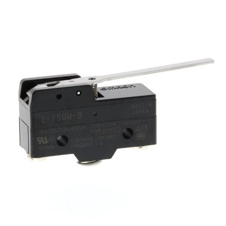 The Omron Z series SPDT, General purpose basic switch with reverse hinge roller lever. These basic switches are ideal for use in uncritical environments or when separately encased in subassemblies.IP00 degree of protection