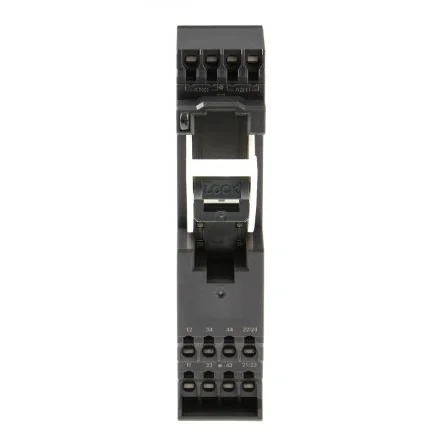 Omron Relay SocketThe Omron 10-pin, 24VDC DIN rail mount socket has screw terminal leads. It has a contact terminal current rating of 6A and voltage rating of 240VAC. The socketed relay is retained and ejected using a simple clip. It has push-in plus terminals and a LED indicator. This relay socket is used with G7SA series.Features and BenefitsDielectric strength 4kVAC for 1min Reinforced insulation between inputs and outputs and poles Flux-tight sealing Forcibly guided contacts Operating temperature ranges between -20°C and 70°C Insulation resistance is 1000 Mohm minApplicationsTimers Counters Temperature controllersCertificationsUL approved CE certified