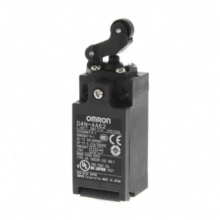 The Omron D4N series safety limit switches compatible to the Popular D4D and it Provide a full Line-up Conforming to International Standards. Line-up includes both slow-action and snap-action models with Zb contacts. The Standardized gold-clad contacts provide high contact reliability. Free of lead, cadmium, and hexavalent chrome, reducing the burden on the environment.1NC/1NO contact form One-way roller arm lever (horizontal) Actuator IP67 Degree of protection Can be used with both standard loads and microloads