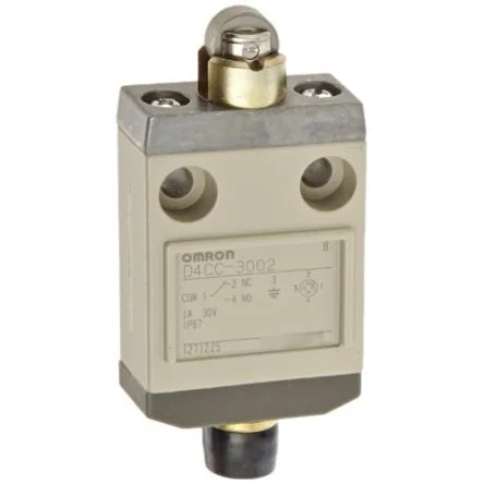 The Omron D4CC series general purpose compact limit switch. It has roller plunger type actuation method.It uses IP67 degree of protection Compact size Rugged metal housing