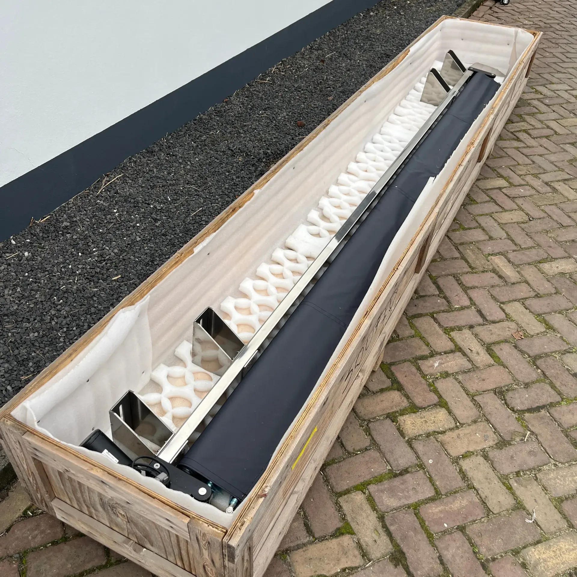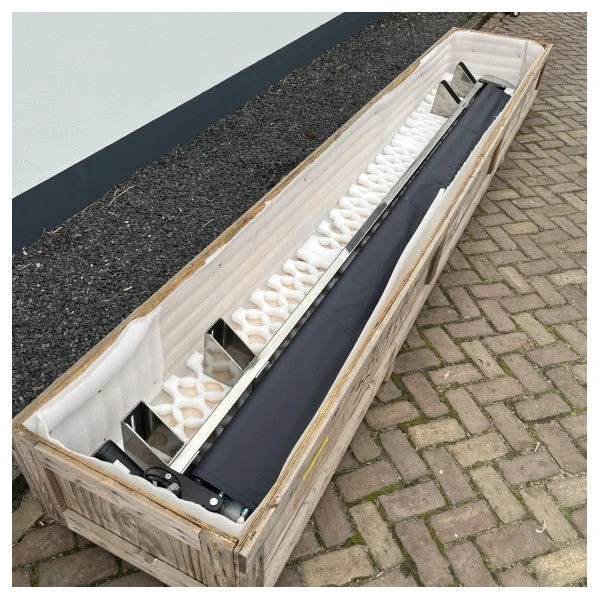 This stainless steel retractable awning is the perfect solution to create shade on your boat. With dimensions of 3600 x 2700 mm, it provides ample protection from the sun, while the black design adds a stylish touch to your boat.
