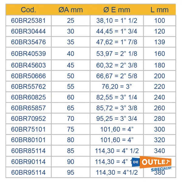 Tor Marine water-lubricated propeller shaft bearing bronze 55 mm - 60BR55762 This water-lubricated propeller shaft bearing from Tor Marine is made of bronze and has a diameter of 55 mm. The bearing is suitable for use in both inboard and outboard motors. The bearing is equipped with an oil channel that ensures the bearing is constantly lubricated with water. This prevents wear and ensures a longer lifespan of the bearing. The bearing is made of high-quality bronze that is resistant to corrosion and wear. The bronze is also very strong, allowing the bearing to withstand high loads.
