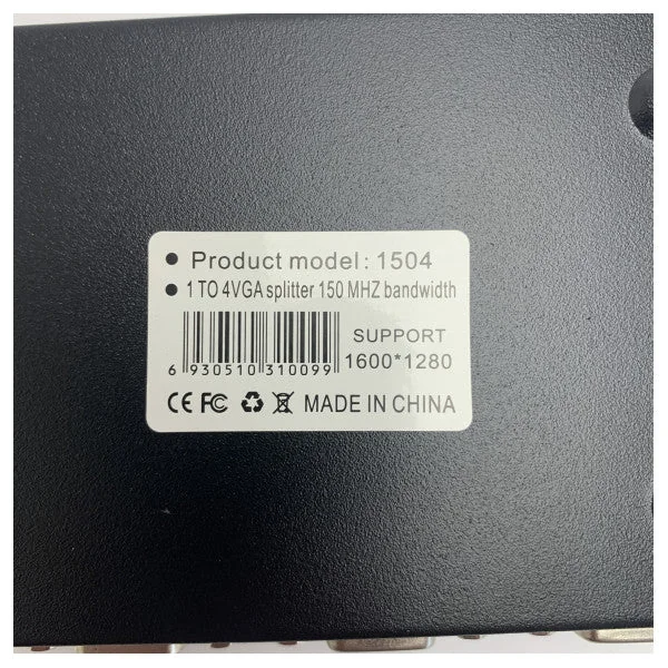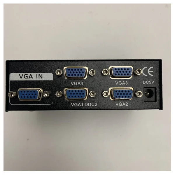 In this digital age, it is important to ensure that all your devices can function optimally. Our VGA Video Splitter 1 Input to 4 Outputs High Resolution 1600x1280 Display Splitter is the perfect solution for distributing one VGA signal to four different displays with a high resolution of 1600x1280. This allows you to fully enjoy crystal-clear images and get the best out of your devices.**Features & Specifications:**- Distributes one VGA signal to four outputs- High resolution of 1600x1280 for optimal image quality- Supports screens up to 19 inches- Easy to use and install- Compact and lightweight design, ideal for travel- Suitable for both desktops and laptops- No external power supply needed, works via USB connection- Robust casing for optimal protection- Compatible with both Windows and Mac- Includes 1 year warranty for extra peace of mind**Why choose this product?**Our VGA Video Splitter is the ideal solution for anyone who wants to distribute their video signal across multiple screens without loss of quality. With a high resolution of 1600x1280 and support for various screen formats, this product delivers clear and sharp images. Thanks to the compact and lightweight design, this splitter is also easy to take on the go. With the robust casing and 1 year warranty, you can also trust that this product will last. Choose our VGA Video Splitter and get the best out of your displays!