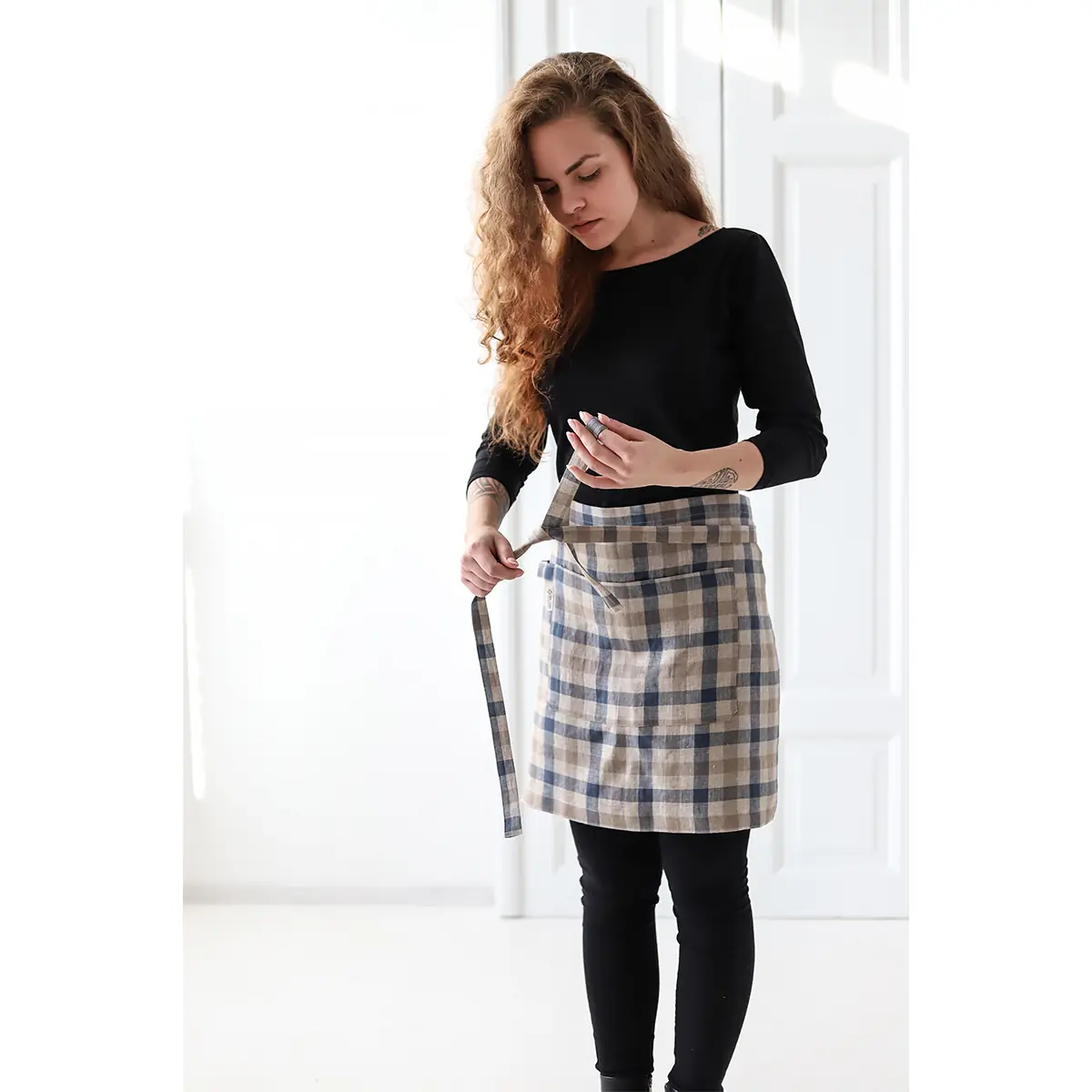 The stonewashed linen apron is made from 100 % pure natural linen. An adjustable waistband would fit any size due to its length. It is a soft, functional, and long-lasting midi apron with one large handy pocket on the front divided in two by the little seam.