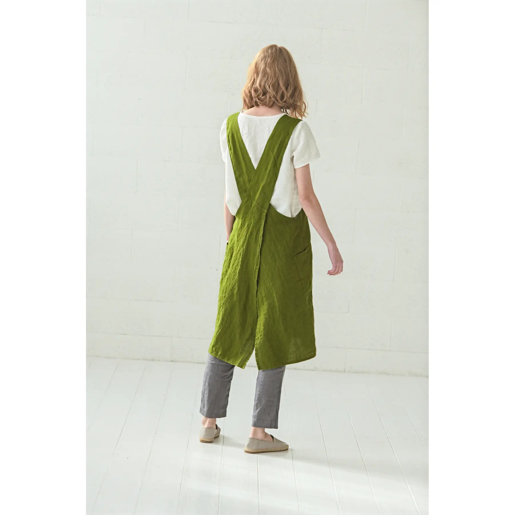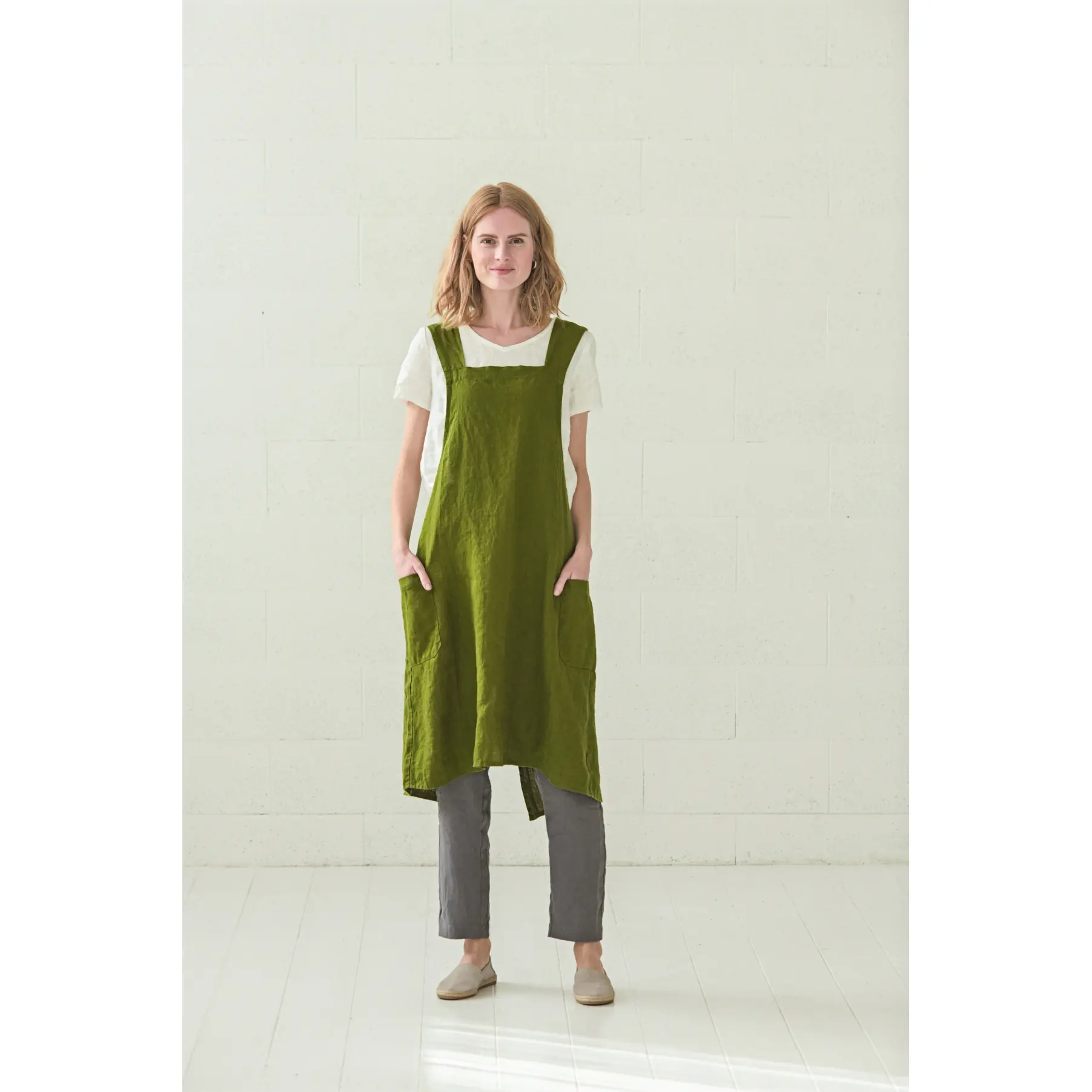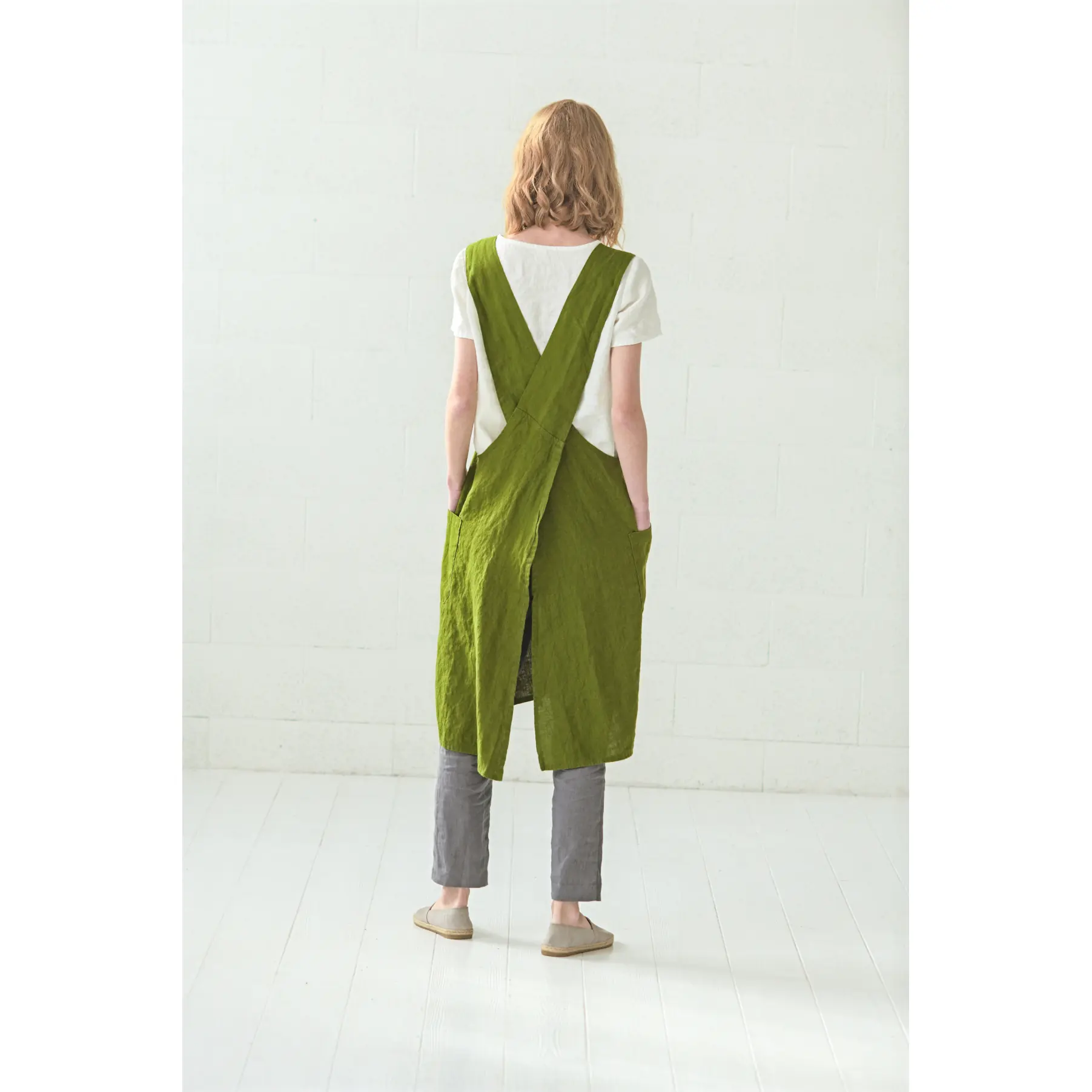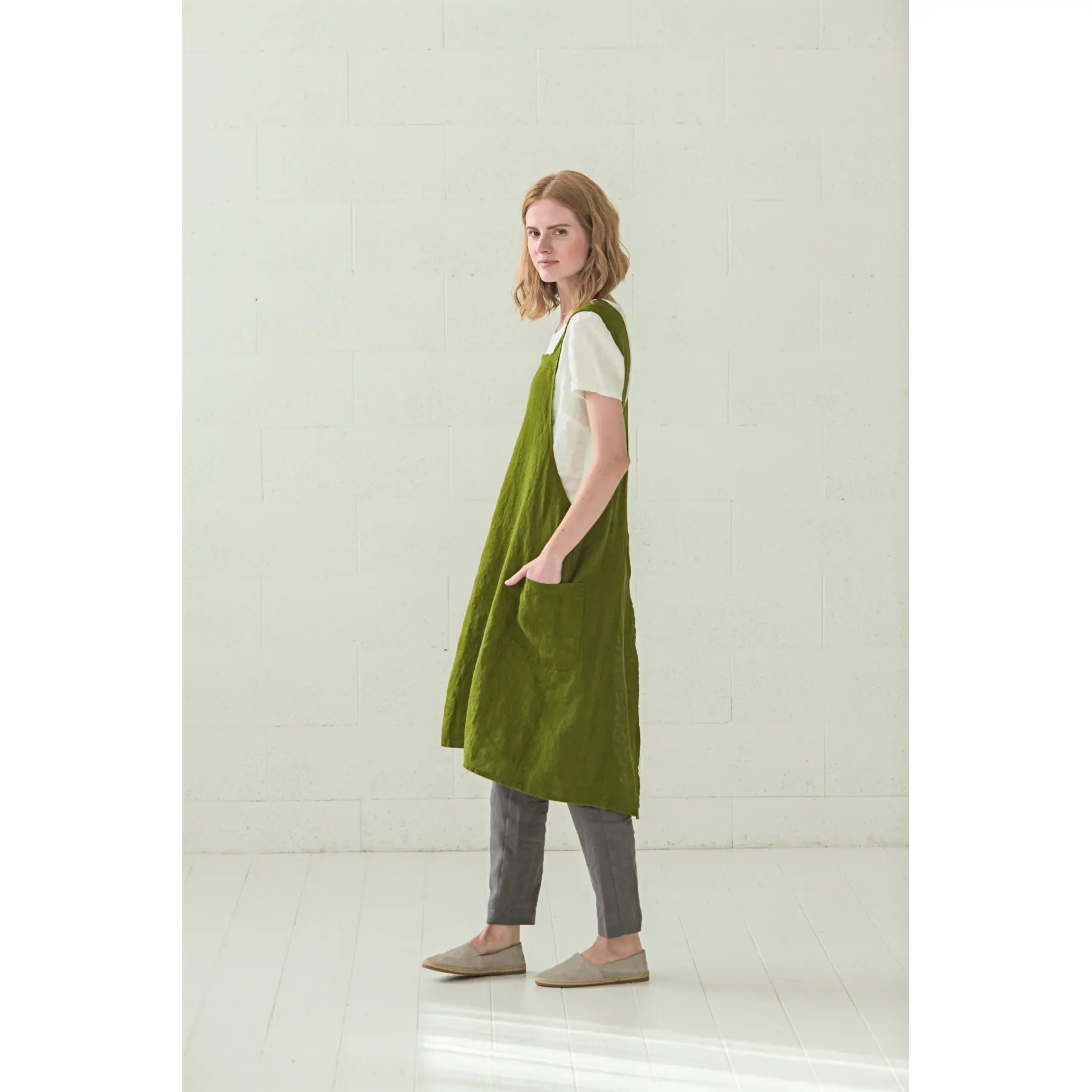 This Japanese style pinafore apron is a useful product to keep your clothes clean from dirt. The cross-body apron has no ties—no need to spend time whilst putting on or taking off. The apron is lightweight and soft because it is stonewashed. Made from 100 % European linen fabric.