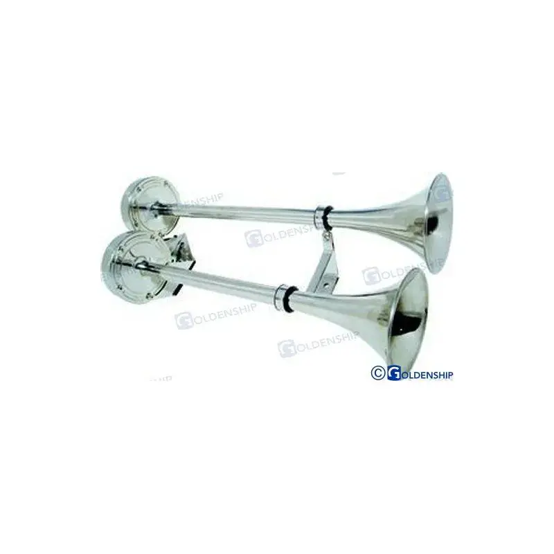 - Double trumpet for wider sound dispersion and reach.