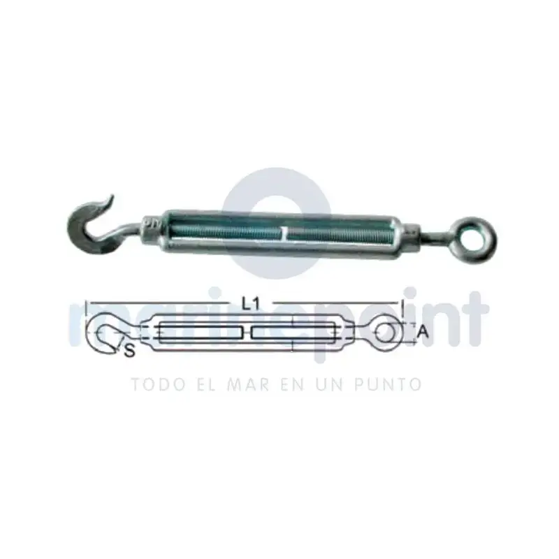 The open eye-hook turnbuckle M8 made of AISI-316 stainless steel is essential for the secure adjustment and tensioning of cables on any boat, providing reliable performance even in demanding marine environments.