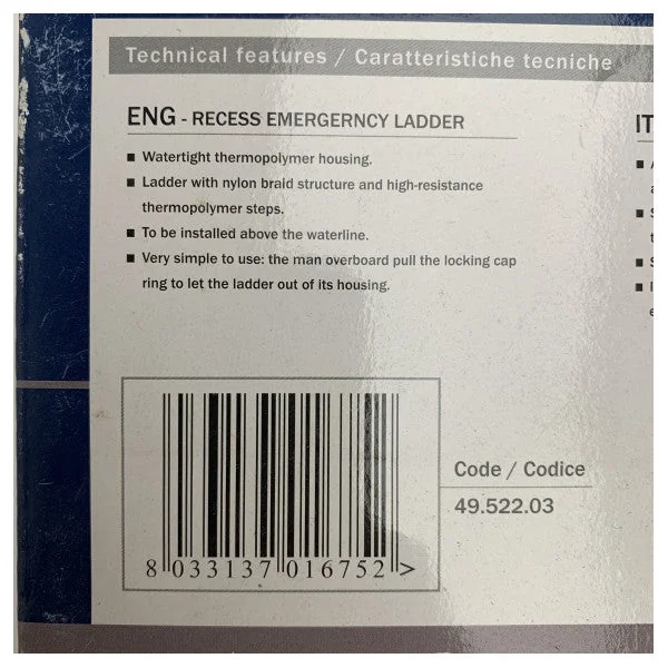 Enhance safety on board with the Osculati 49.522.03 3-step built-in emergency ladder. This robust and reliable emergency ladder is essential for any boat and provides a quick and safe way to climb back on board in emergency situations.