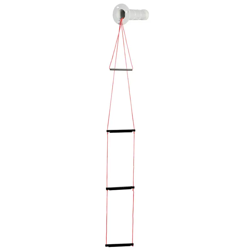 Watertight thermopolymer housing. Ladder with nylon braid structure and highly resistant thermopolymer steps. To be installed above the waterline. Very simple to use: in a man-overboard situation, the crew member in the water pulls the locking cap ring to let the ladder out of its housing. Sold in display package.
