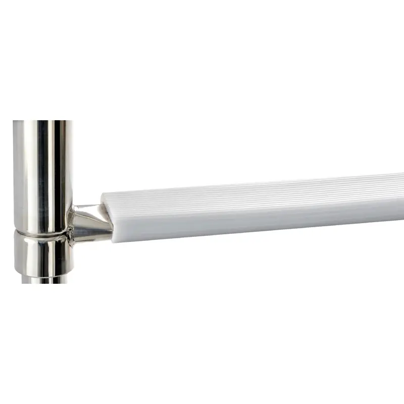make climbing on board easier. Made of mirror-polished AISI 316 stainless steel with superior finish, oval steps and white plastic footboard.