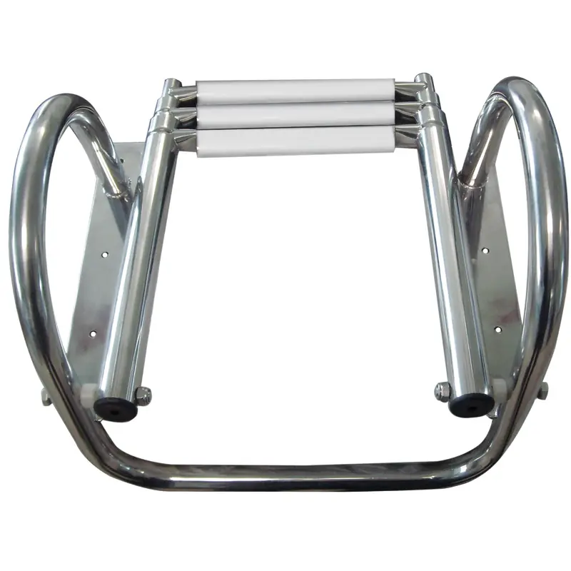 Durable 3-step telescopic ladder with handles, perfect for marine use and easy storage.