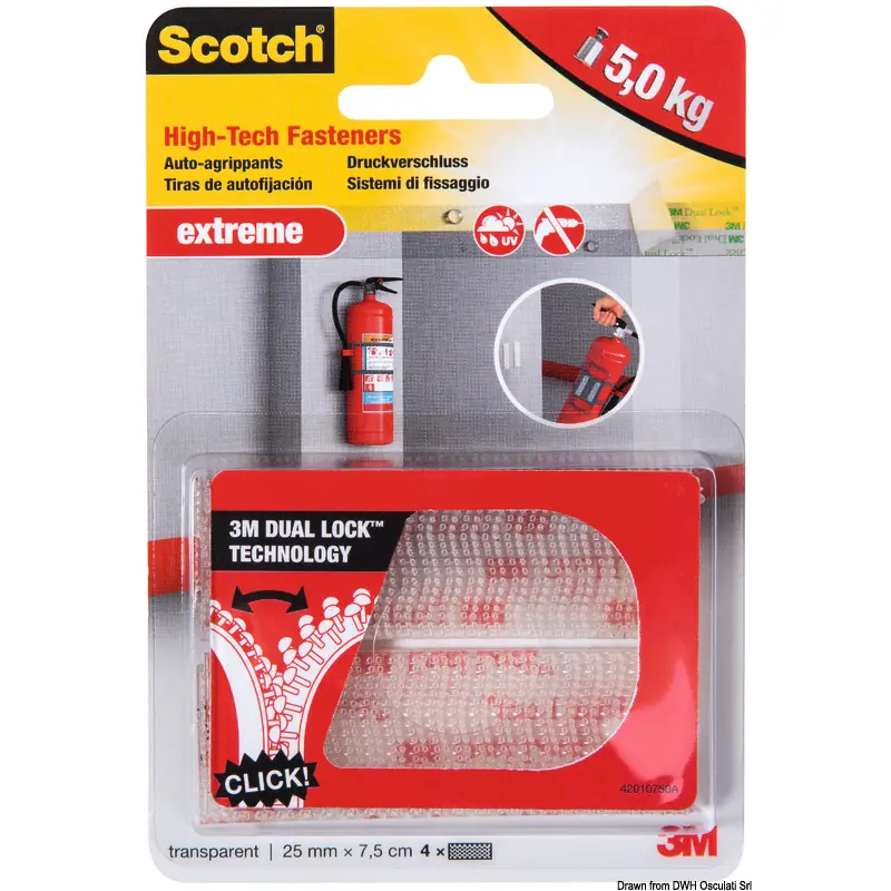 Flexible open-close self-adhesive fastening systems fitted with two strips featuring tiny hooks. When pressed together, they adapt to several uses (either heavy or light objects).