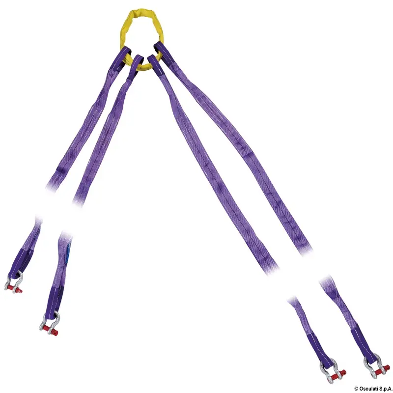 This kit is designed to offer several hooking point combinations when different lengths are reached ensuring the correct balance while lifting the boat.This allows for finding the correct balance of lifting the vessel.Simple, intuitive use and easily adjustable for each haul-out. Can also be used as a 3-arm kit.Lengths can be varied in two ways:- Boat side, adding half the extension strap (+0.5 m) or the whole of it (+1 m).- boat side: adding ½ extension band (+0.5 m) or the full extension band (+1 m).Kit comprising:- 2 x 3.3-m long straps (B)- n° 2 long bands (B) of 3.3 m each;- no. 1 yellow ring attachment to the crane (C) from 0.5 m;- no. 2 extension strips (D) of 1 m each;- No. 4 galvanized steel shackles, certified for lifting 2 tonnes (E).