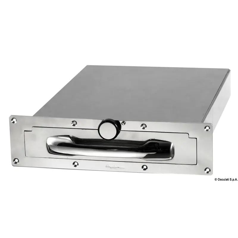 Comprising a telescopic ladder with 4 steps + box to be incorporated into the thickness of the platform.High-precision slip-in/out sliding movement.