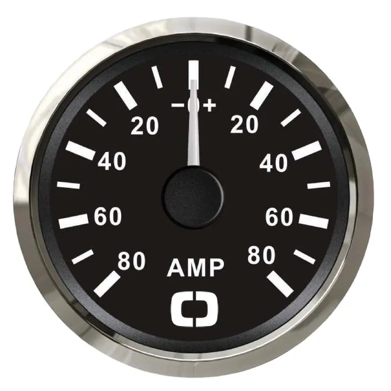 Accurate 80 A ammeter with shunt, featuring a stylish black glossy design and backlit dial.