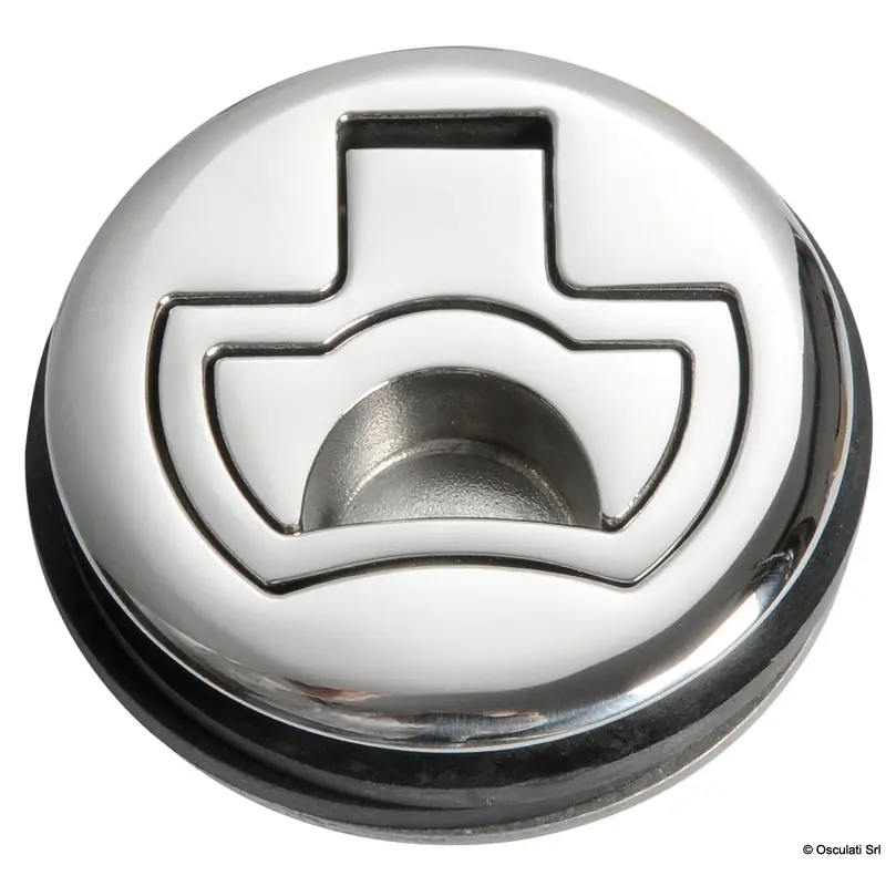 Mirror-polished AISI 316 stainless steel. Spring retractable handle, counterflange for fixing.