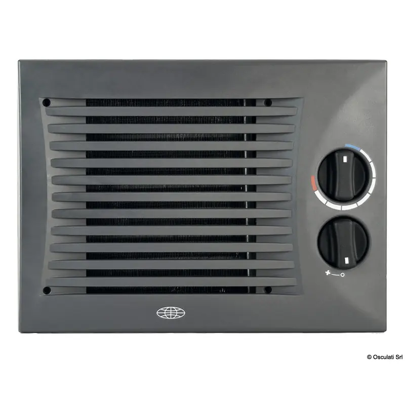 Heat exchangers with integrated active fan for Autoterm Flow liquid heaters. They receive water produced by the boiler type 50.261.12 - 50.262.12/24 and distribute hot air. For versions without an integrated switch, any thermostat and/or switch with one or two speeds (type 50.266.30) can be connected.