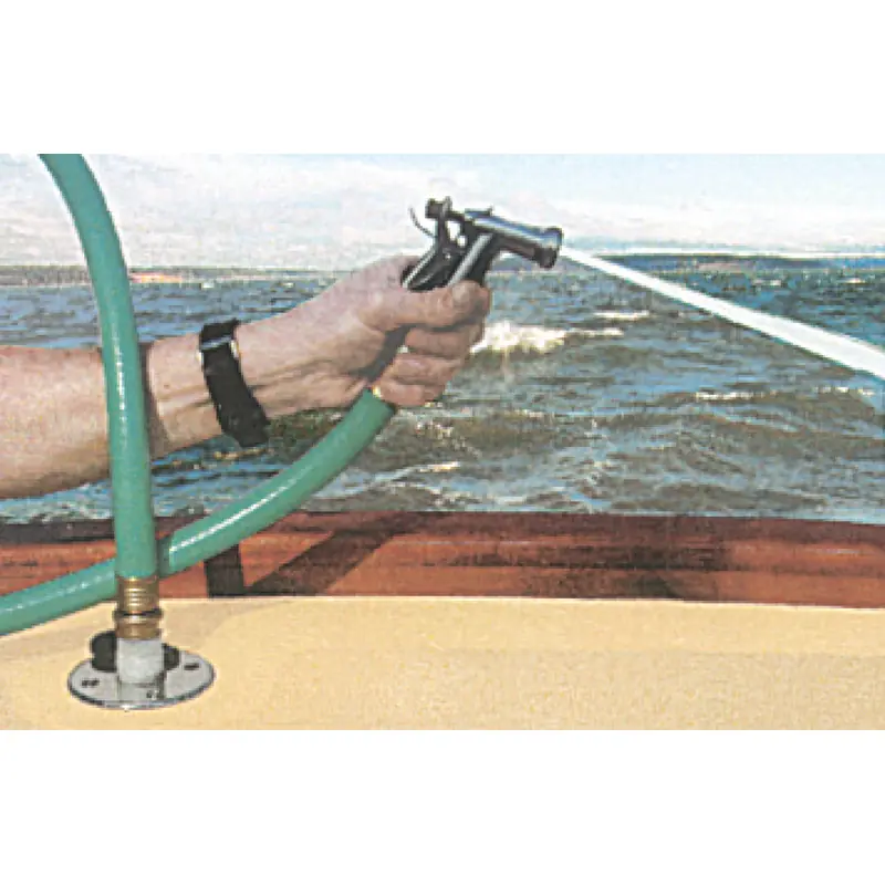 The device connects under deck to Washdown pumps or similar items and it keeps the pump under pressure. When the bayonet fitting connects the washing hose, the device automatically opens and activates the pump. 100% stainless steel. Garden-type quick fitting on the end caps (36.189.02).