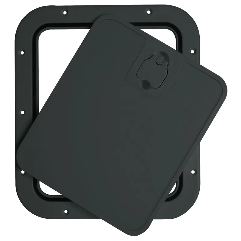 Very sturdy anti-skid surface; splash-proof lid closure with neoprene seal; flush mounting; they can be used as hatches for lockers, fishing containers or as boxroom hatches or bayonet front bulkheads; removable front for easy access. Ideal for installation on dashboard with nearby steering bench.