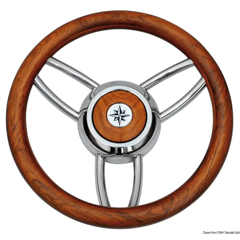 Enhance your boating experience with the Osculati Blitz Steering Wheel, featuring a durable stainless steel frame and elegant teak design.