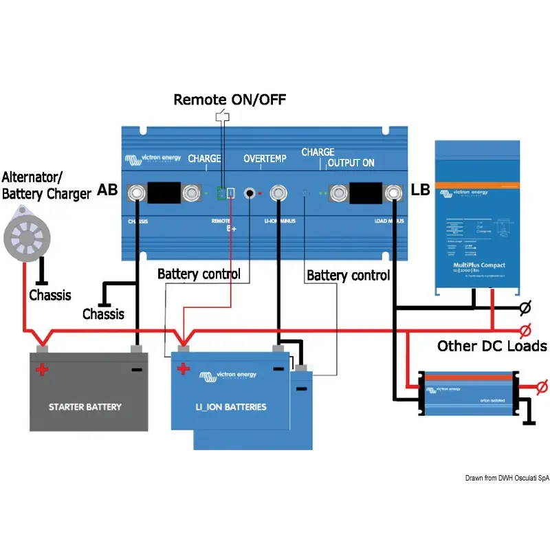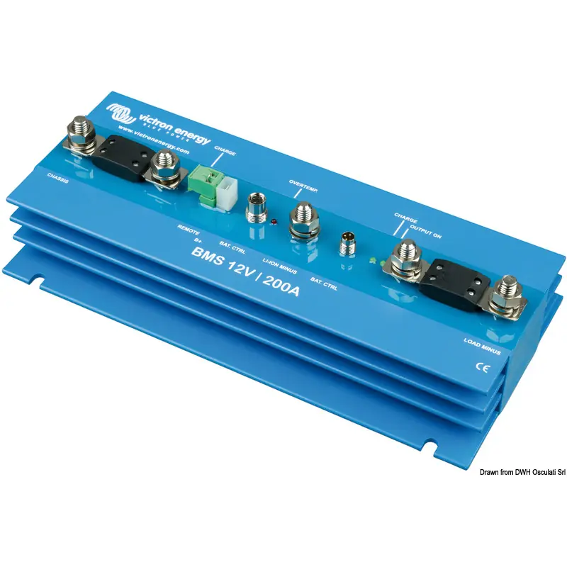VICTRON Lithium-iron-phosphate (LiFePO4 or LFP) batteries have integrated cell balancing and cell monitoring. Up to ten batteries can be paralleled and up to four batteries can be series-connected, so that a 48V battery bank of up to 3000Ah can be assembled. The cell balancing / monitoring cables can be daisy- chained and must be connected to a Battery Management System (BMS). Battery Management System (BMS)The BMS connects to the BTV and will:1 - Prevent cell undervoltage (lower than 2.5V) by timely disconnecting/switching off the load.2 - Prevent cell overvoltage (exceeding 4.2V) by stopping the charge process.3 - Shut down the system in case of overtemperature (exceeding 50° C).4 - Carry out cell balancing.5 - BMS supplies up to 200 A with any CC load (inverters and inverters/battery chargers included);6 - More features may be included: see the individual BMS data sheet. Advantages:1) Lithium-iron-phosphate (LiFePO4 or LFP) is the safest of the mainstream li-ion battery types. The nominal voltage of an LFP cell is 3.2V (lead-acid: 2V/cell). A 12.8V LFP battery therefore consists of 4 cells connected in series; and a 25.6V battery consists of 8 cells connected in series.2) Up to 70% more lightweight and compact in comparison with traditional batteries.3) A lead-acid battery will fail prematurely due to sulphation:•If it operates in deficit mode during long periods of time (i.e. if the battery is rarely, or never at all, fully charged).•If it is left partially charged or worse, fully discharged.An LFP battery does not need to be fully charged. Service life even slightly improves in case of partial charge instead of a full charge. This is a major advantage of LFP compared to lead-acid.4) Other advantages are the wide operating temperature range, excellent charge cycle performance, low internal resistance and high efficiency (see below).