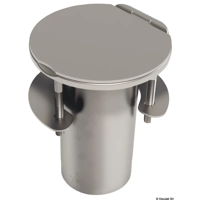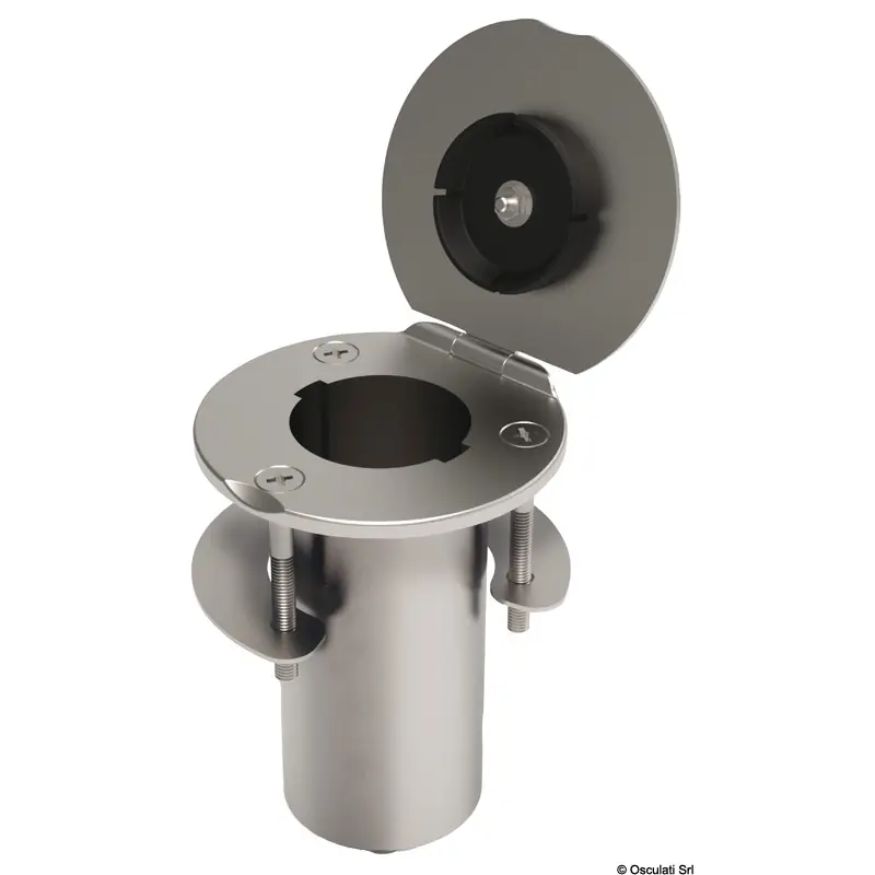 Made of stainless steel with locking hasp and staple, locking seal and mounting counterflange - 46.814.90.Water drainage setup for a Ø 12 mm pipe, including mounting counterflange (code 46.814.90).The closure discreetly protects the glass when not in use.It is possible to customize the cap with a logo upon request.