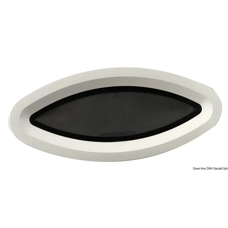 Durable elliptical hatch with mosquito net and adjustable stops for optimal ventilation.