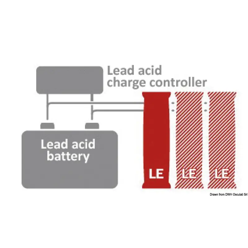 The LE300 smart battery system is a lithium extension for 12V lead-acid batteries (AGM, GEL or wet cell).The integrated battery management system takes care of protecting and balancing the lithium cells while monitoring the lead-acid battery. The intelligent distribution of loads and capacity in the LE300 continuously keeps the lead-acid battery at a full charge and therefore extends the battery life.Plug & Play installation: simply connect the system to the plus and minus pole of the existing battery with no need to modify the circuit or the charging technology. The LE300 modules are light, compact and modular, and can be combined up to 24 in parallel, increasing the battery capacity to experience self-sufficiency.