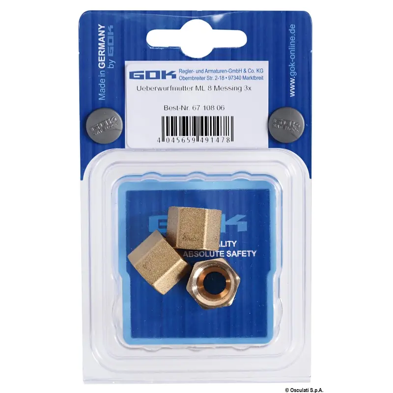 Durable brass nut designed for 8-mm copper tubes, ensuring a secure fit.