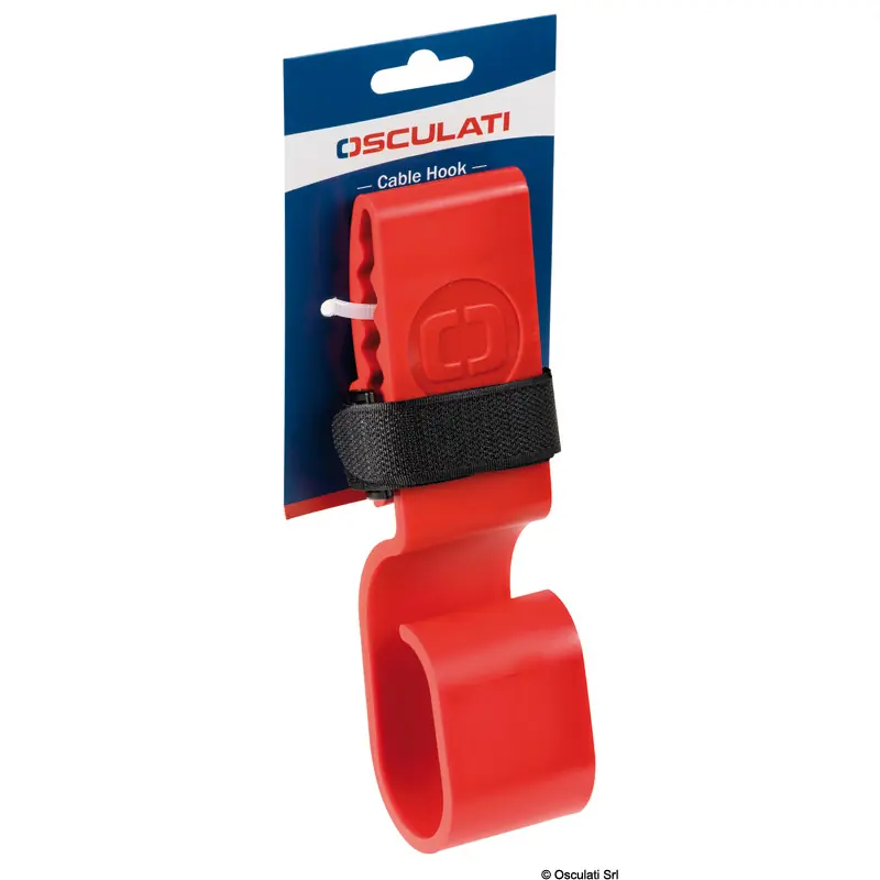 Cable hook that lets through the power cord and the dock-to-boat water hose.Quick attachment to the mooring line due to its special shape with a safety strap that prevents the cable clamp from accidental releasing.Very sturdy, UV- and sea water-resistant.