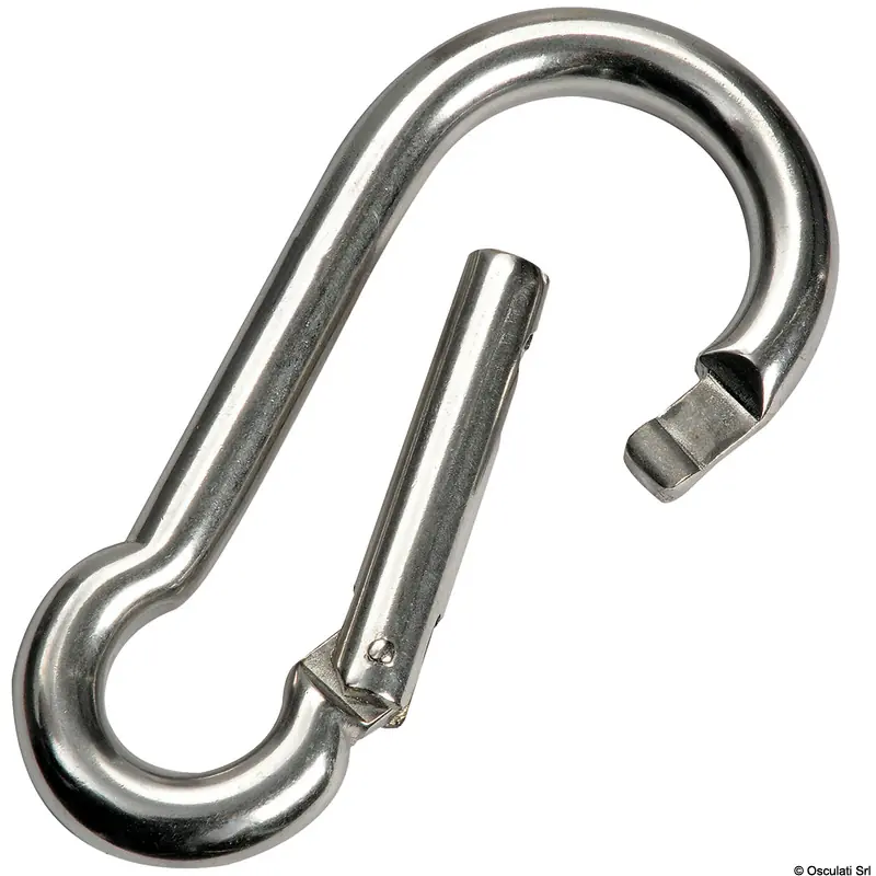 Durable carabiner hook made from AISI 316 stainless steel, perfect for marine applications.