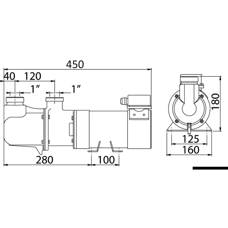 Consisting of a worm screw rotor revolving inside an NBR rubber stator. These electric pumps are used in the marine sector to drain waste boxes, toilet black waters and particularly viscous liquids with small suspended bodies.Bronze pump body, AISI316 stainless steel shaft and rotor, AISI316 stainless steel and NBR joint, ceramic/graphite/NBR (anti-corrosion) mechanical seal.24V permanent magnet motor, IP44 protection degree, F insulation class, continuous service S2 (40 minutes).