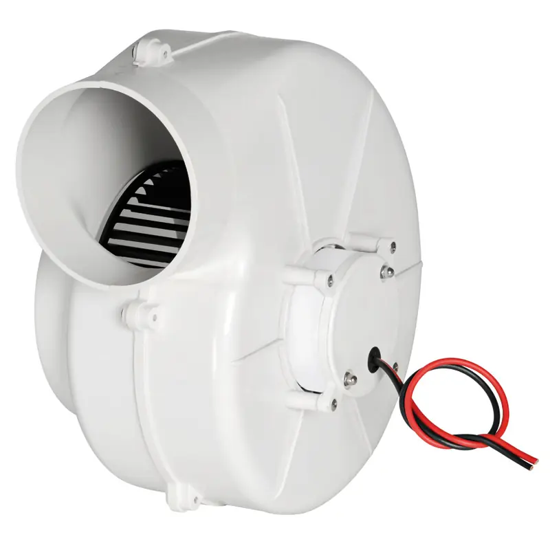 Efficient 12V centrifugal extractor designed for continuous cooling in engine rooms.